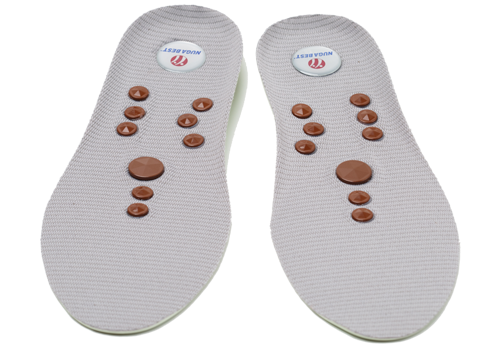 29.03.2018„Нуга Бест“ създаде за вашите стъпала удобни ергономични стелки с турманий. Турманиевите стелки за обувки са произведени по специален начин, различен от производството на други стелки : 9 турманиеви диска, подредени в конфигурация според биоактивните точки на стъпалото, дават ефекта на точков масаж. Текстилът, произведен с вплетени сребърни нишки, осигурява комфорт, усещане за свежест и хигиенична среда за ходилото.