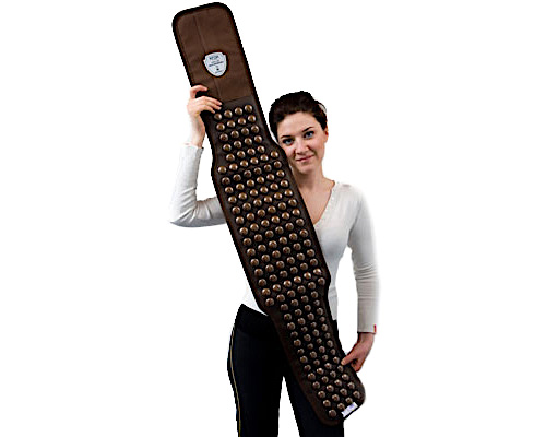Поясът е лек и гъвкав, с допълнителен удължител за по-пълни хора. По вътрешната му повърхност са фиксирани 156 диска от турманиева керамика. Чрез температурния регулатор настройте комфортна температура. Използвайте за нагряване на различни части на тялото : кръста, гърба, корема, краката, стъпалата, ръцете, дланите, коленете, глезените. За ежедневно използване в домашни условия. Можете да го носите около кръста си дори без да е включен, заграява се от тлесната топлина.